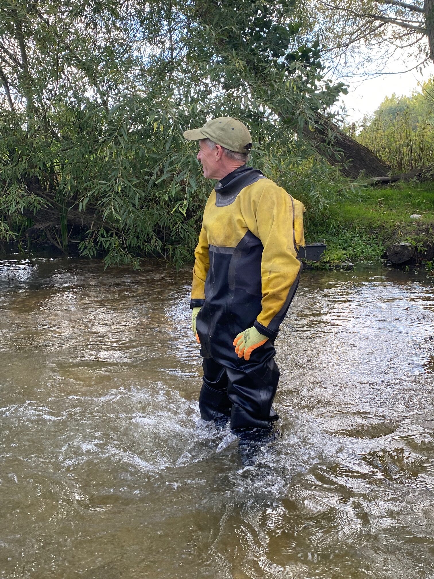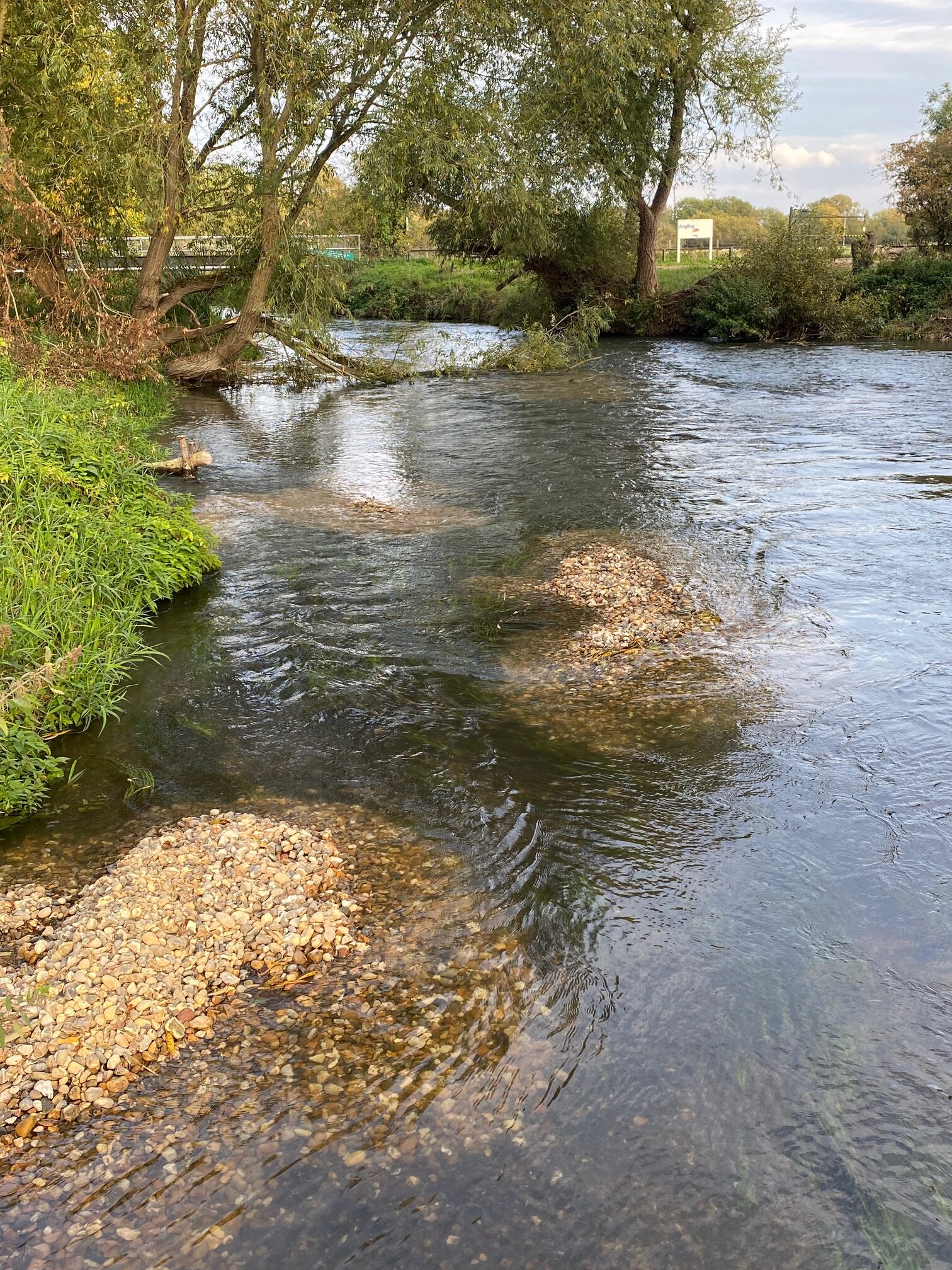 With advice from the South East River Trust, EA and LFCC we placed the gravel in specific areas, some over existing spawning grounds replenishing existing gravel beds as well as in new areas in close proximity to provide new eddies, rippling flows, shallow runs and deeper pools for the adult brood stock. We also ensured there was adequate tree and reed cover to give the best environment we can to encourage our existing stock to make home and more importantly spawn here in future years.